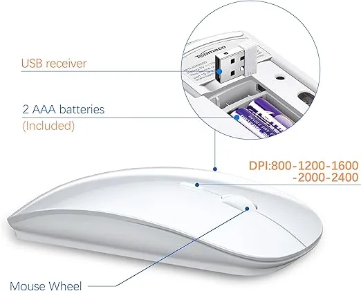 کیبورد و ماوس بیسیم فوق باریک، مجموعه کیبورد و ماوس و سوئیچ قیچی TopMate 2.4G Silent Compact USB 2400DPI با کاور، 2 باتری AA و 2 باتری AAA، برای کامپیوتر/لپتاپ/ویندوز/مک – سفید