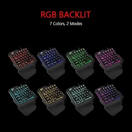 کیبورد بازی تک‌دستی RedThunder با نور پس‌زمینه RGB و 35 کلید، کیبورد کوچک قابل حمل مخصوص بازی، دسته بازی ارگونومیک برای گیمرهای کامپیوتر.